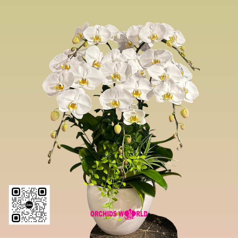 CHẬU LAN HỒ ĐIỆP 8 CÀNH TRẮNG