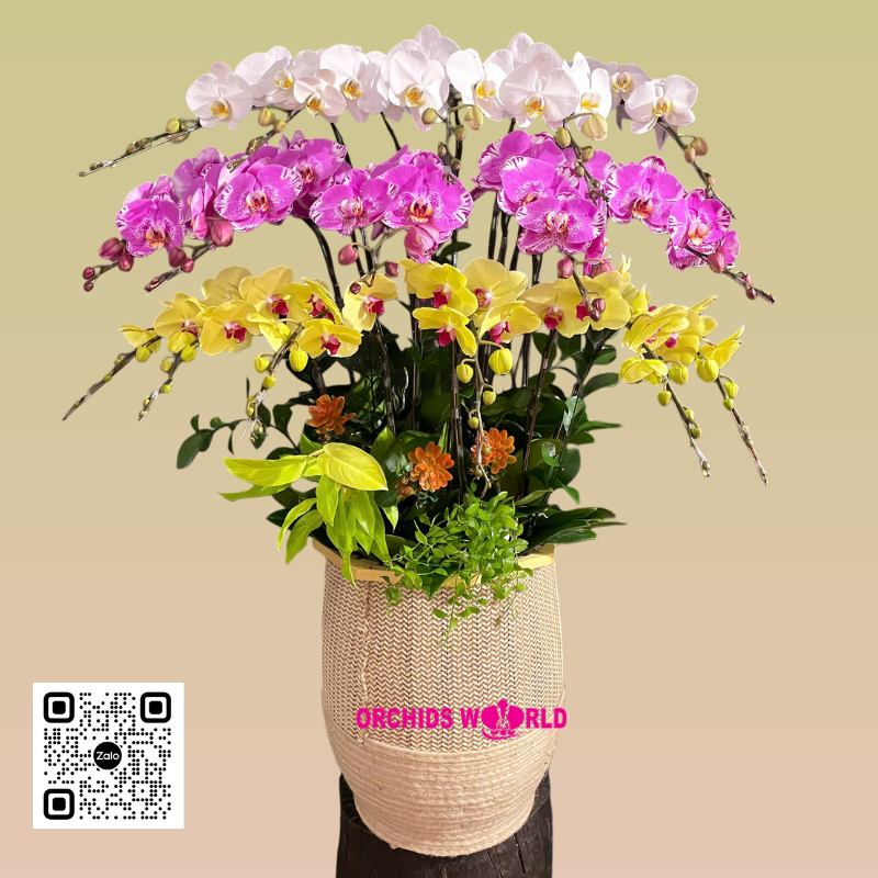 (Chậu Lan Hồ Điệp 15 Cành Trắng Vàng Hồng)
