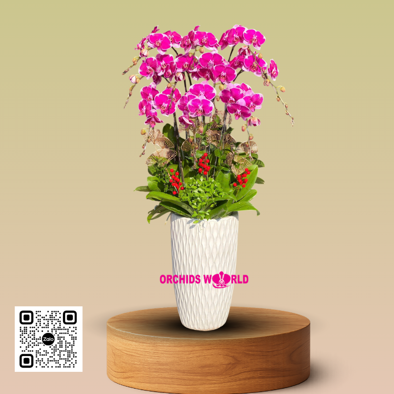 – Đây là mẫu chậu lan hồ điệp mà shop hoa ORCHIDS WORLD của chúng tôi đã gửi đến quý khách hàng trong dịp chúc mừng khai trương. Trong những dịp đặc biệt như thế này, chậu lan hồ điệp chính là một món quà vừa độc đáo vừa ý nghĩa gửi gắm tấm lòng chân thành của bạn đến người nhận, giúp cho tình cảm gắn kết ngày thêm sâu đậm.