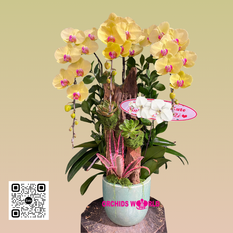 CHẬU LAN HỒ ĐIỆP 20 CÀNH MÀU VÀNG MAI