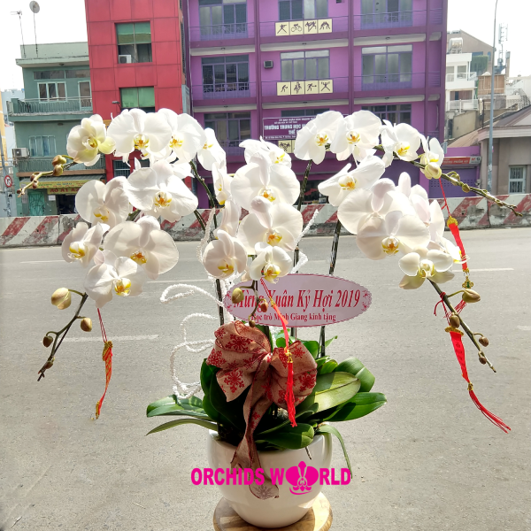 – Đây là mẫu chậu lan hồ điệp mà shop hoa ORCHIDS WORLD của chúng tôi đã gửi đến quý khách hàng trong dịp chúc mừng năm mới. Trong những dịp đặc biệt như thế này, chậu lan hồ điệp chính là một món quà vừa độc đáo vừa ý nghĩa gửi gắm tấm lòng chân thành của bạn đến người nhận, giúp cho tình cảm gắn kết ngày thêm sâu đậm.